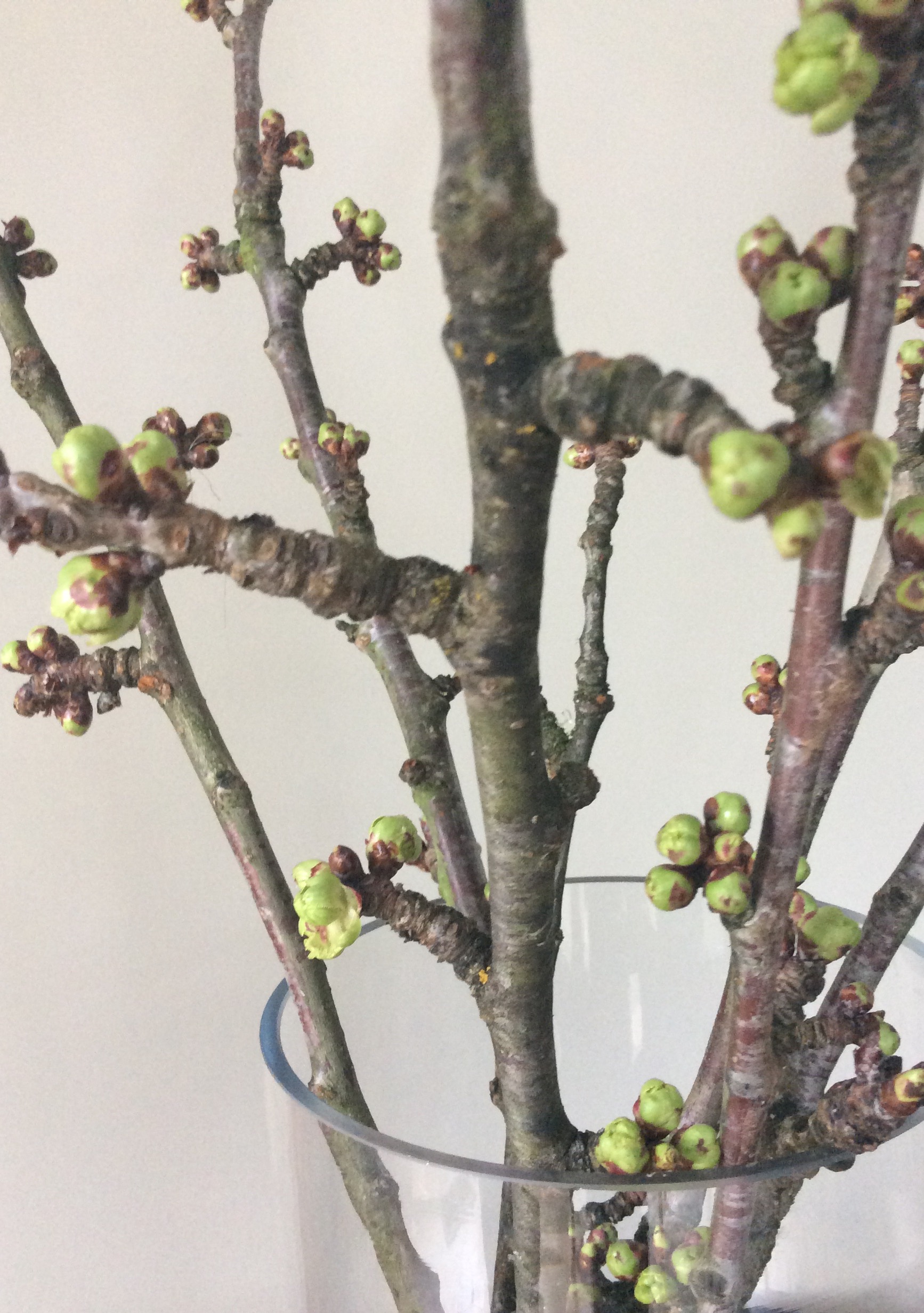 If you’re lucky, a florist near you might be able to supply you with a nice bunch of forced flowering branches for a larger statement. You can’t go wrong with something white or a burst of yellow Forsythia or coral Quince.