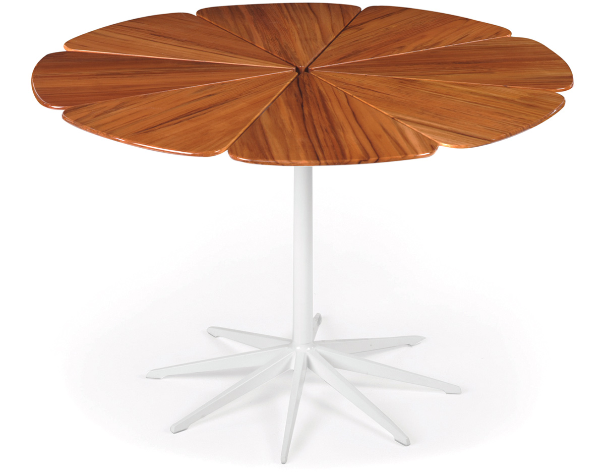 Well, that was the thinking of Richard Schultz when he designed the Petal Table in 1966. As a request by Florence Knoll to fill the void for quality outdoor furniture, the Petal series was created to compliment the chairs of another Knoll luminary, Harry Bertoia. Looking as if they were inspired by the daisy, a strong 60’s iconic image, these tables were actually inspired by the Queen Anne’s Lace that spotted the Pennsylvania countryside near Schultz’s home. Still available after near 50 years the Petal table is available in a dining, cocktail and occasional version and finishes are all white or a white base with teak petals. So, as you start thinking about your Spring planting you might consider adding one of these perennials to the mix.