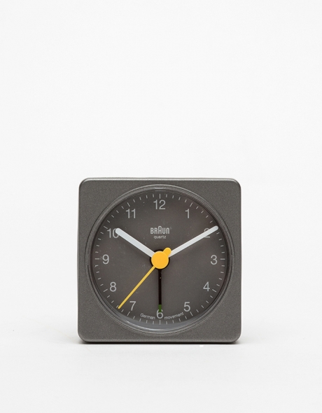 The classic Braun travel alarm clock ,now in gray, will help keep track of those fleeting minutes at home or away. http://needsupply.com/mens/new/classic-bnc002-clock-in-grey.html