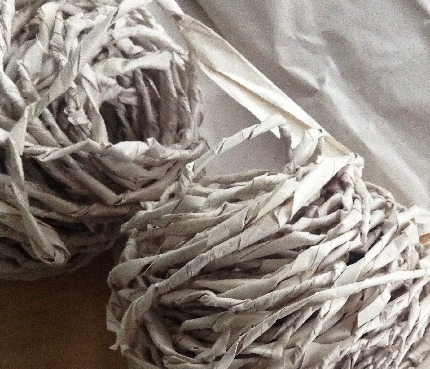 is good news. Which, in fact , should leave us with a surplus of blank newsprint. Combine a few sheets of that with a couple of “snow” days, a McGuyver rigged spindle and some scissors and you have got yourself a great way to ” get away”…get out of your own head for a bit. The result? Newsprint yarn, a relaxed constitution and perhaps a solution to some problem that’s been needing attention. Is “spinning” like yoga? Could be. At the very least it provides some peace and quiet, gentle rhythm and some time to think.