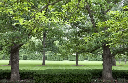 and the allee of locusts and lawn at the Miller House in Columbus, Indiana via http://www.imamuseum.org/visit/miller-house/landscape-architecture