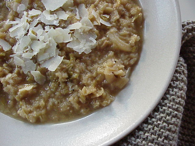Changes in weather…changes in schedule…additional Fall projects…all have me in need of a little break and a little grounding. I can’t think of anything better to get me back on track and slow me down than a big bowl of soup. And if it’s simple…even better. Marcella Hazan’s recipe for Venetian style Rice and Smothered Cabbage soup fits the bill perfectly with just a few simple ingredients. If you plan ahead, prepare enough cabbage to have as a side, then transform the rest into the soup