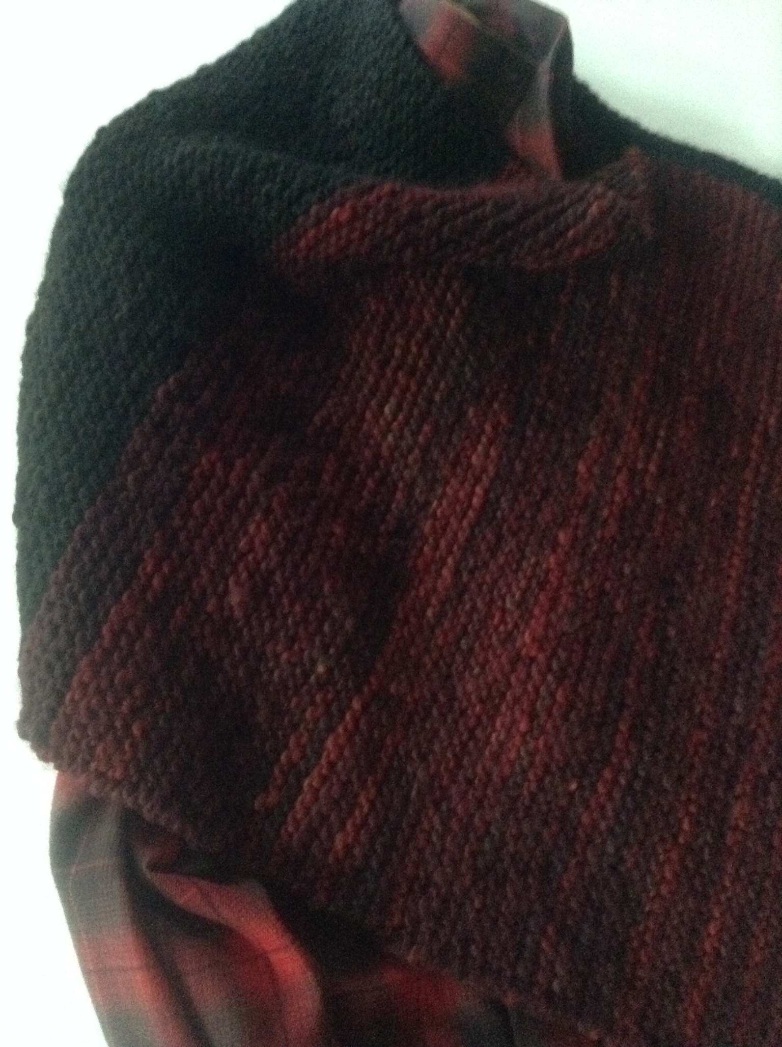 Well, actually, it’s a poncho…which is a type of wrap, isn’t it? And, just in time to ward off the Autumn chill. When I realized that I didn’t have enough wool to create a blanket or a throw, this was the simplequietmodern solution… a modified and color blocked version of the Easy Folded Poncho from Churchmouse Yarns and Teas. There you have it. Challenge accepted…challenge completed.