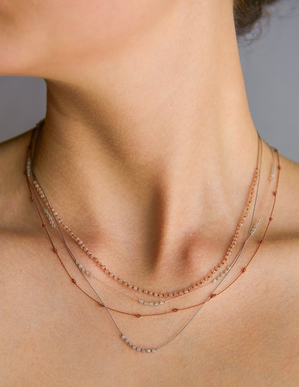 What girl wouldn’t love the simplicity of semi- precious gemstone beads lovingly strung into this assortment of necklaces? Each Gemstone & Knots kit from Purl Soho makes 4 necklaces in the designs shown, and is available in nine color ways. Photo: https://www.purlsoho.com/create/2017/11/29/gemstones-knots-necklaces/