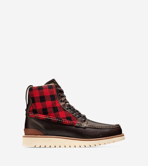 The Cole-Haan Waterproof boots for dashing through the snow. Image:https://www.colehaan.com/mens-grandexplore-waterproof-moc-toe-boot-chestnut-waterproof-leather-plaid/190595485815.html