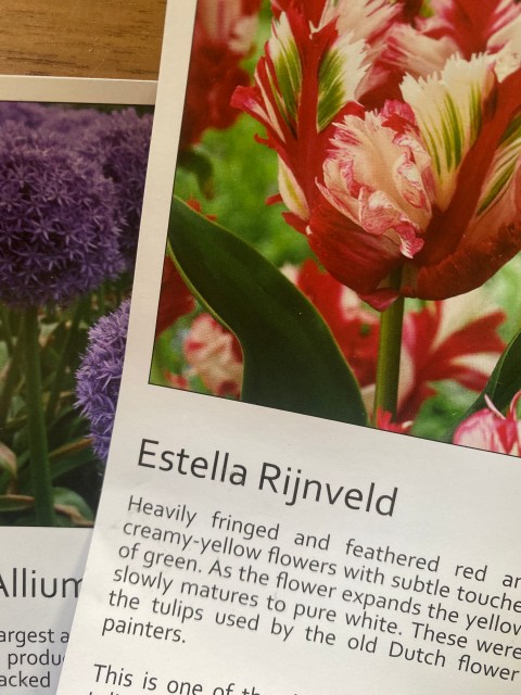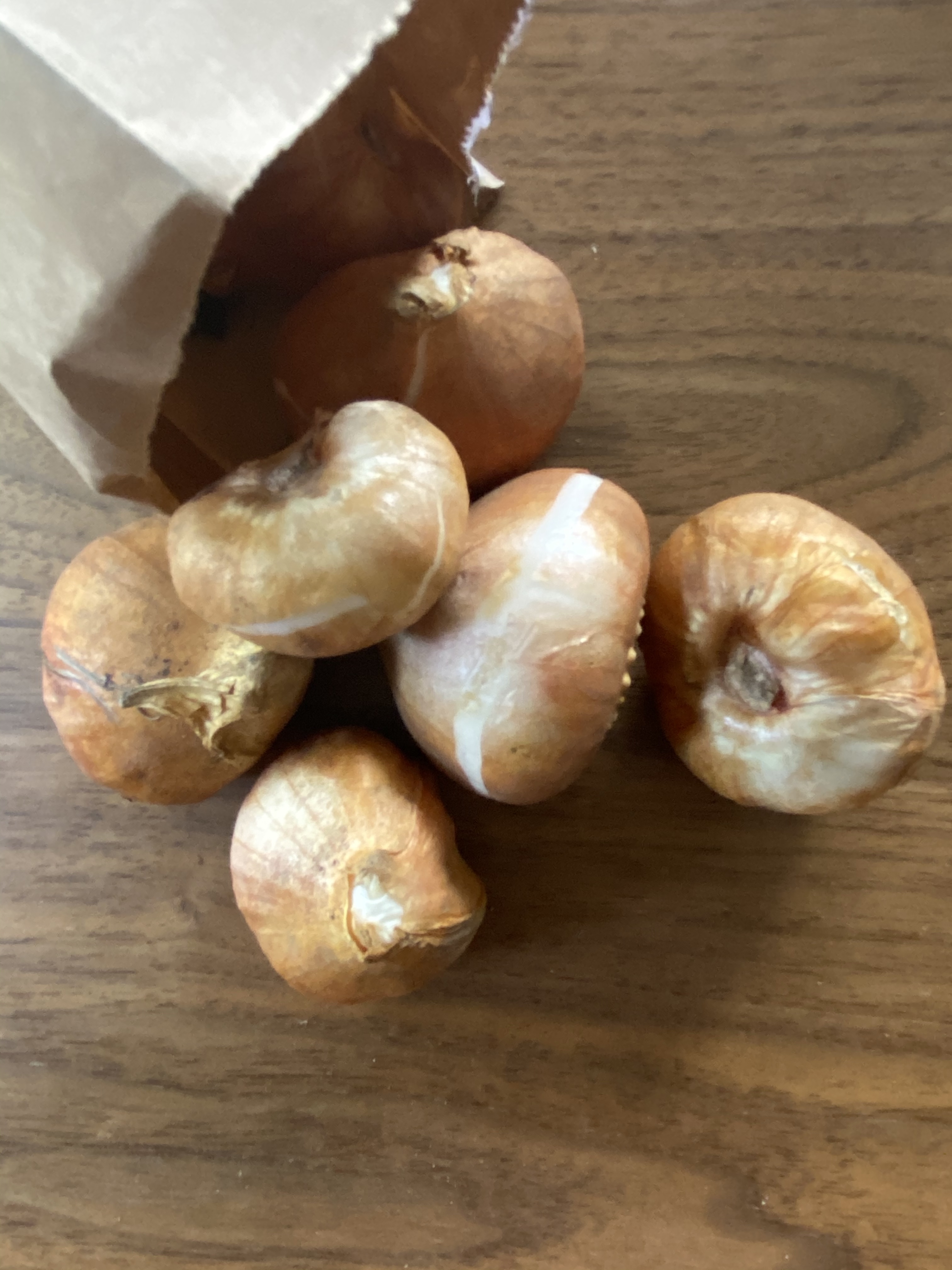 Straight from the Netherlands, a surprising and welcome gift of flowering bulbs. Now, as the days are growing shorter, I can try to ward off any Seasonal Affective Disorder by planting the Giant Allium and Parrot Tulips, take a deep breath and anticipate the arrival of their dramatic blooms come Spring. It’s always great to have something to look forward to so, before the snow flies, you might want to to plant some yourself.