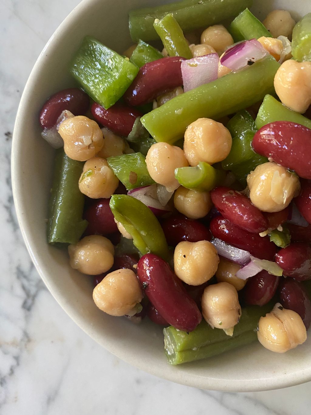 you’ve got this. OK, a recent twister not only tore up the neighborhood, but the snapped poles and downed lines left us without power for several days. Still, ya gotta eat, right? And, without refrigeration you need something that will hold up pretty well. This simple Summer salad fits the bill. Have it by itself for lunch or pull out the grill and serve it alongside some grilled chicken sausages or burgers for dinner. In this particular case my Covid-19 pantry had all the usual suspects…green beans, kidney beans, garbanzos, green pepper and red onion. After draining, add the beans to a bowl with 1/2 cup of diced red onion and 1/2 of the green pepper diced. Toss with the simplest vinaigrette of lemon juice, olive oil, a crushed clove of garlic, a good pinch of kosher salt and freshly ground pepper. After a quick toss, cover until ready to serve and adjust the S & P if necessary. With tonight’s dinner covered all there is to do is wait.