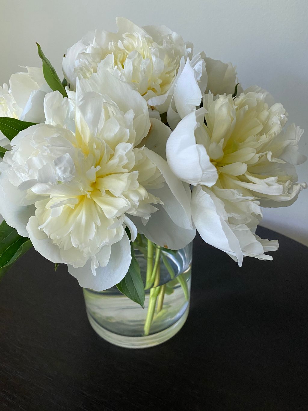 Time for little acts of kindness…simple acts of beauty. They won’t break the bank and the rewards will come back to you tenfold. For a friend, a neighbor or even to elevate your desk if you’re conducting Zoom meetings from home, these seasonal white peonies make quite the simplequietmodern statement. Their gentle fragrance? Well…like the little shot in the arm your actions will give to your local economy…an added bonus.