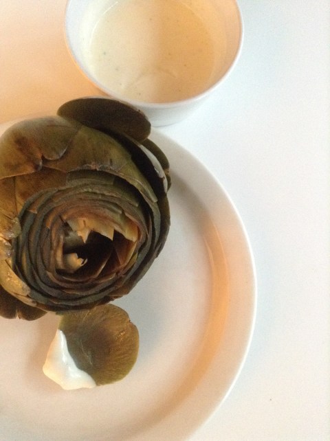 Artichokes! Kicking off the festival season again is the Artichoke Festival in Castroville, CA this coming weekend, June 10th and 11th. I’ve mentioned Castroville before I’m sure, the Artichoke Capitol of the world. If you love artichokes like I do, you can celebrate with them this weekend with a simple light Spring lunch or dinner starter. What could be more simple? While your trimmed artichokes are boiling up, whip up a quick dip of melted butter, mayo and lemon juice. Done.