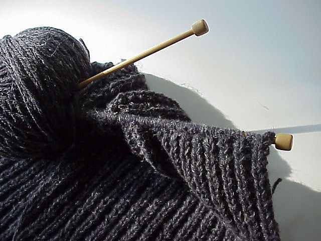 This sudden Winter blast reminded me I should have knocked one of these out a month ago. Apparently a 70 degree start to November had my mind elsewhere than keeping warm. Queue, my improvised cap, is as simple to work as possible, even for a beginner. Using about 1 1/4 skein of DK weight yarn and a pair of #7 needles, you simply knit up a swatch of Mistake Stitch Rib large enough to go around your head and as long as you’d like your cap to be. After binding off in pattern, sew the piece up the long edge. To finish, thread a double strand of yarn and stitch around the tube about 4″ from the top edge, pull to gather from the inside and tie off. Done. I told you it was simple. Once you’re on a roll you might want to make a couple extras for Christmas gifts.