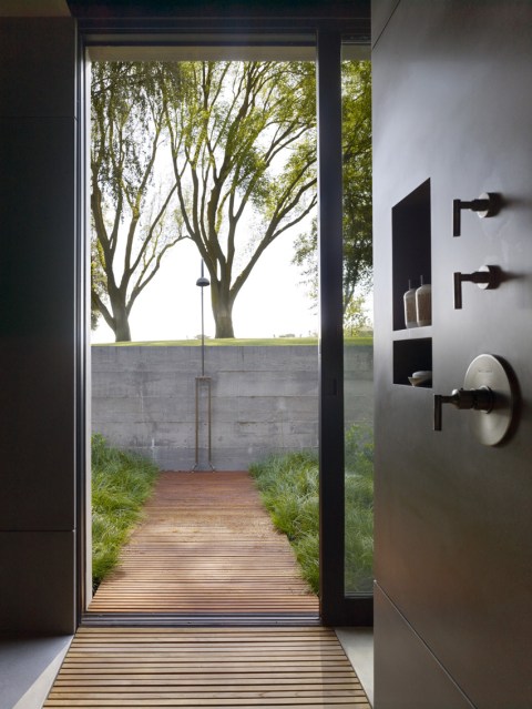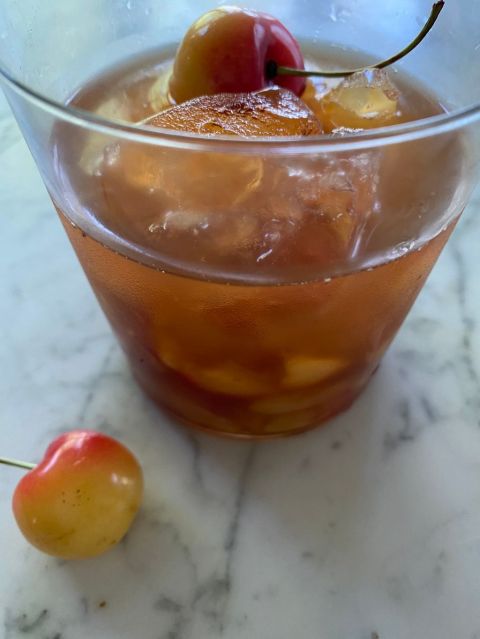 A refreshing outdoor shower after a long walk on a secluded rocky beach followed by a smart fresh cherry old fashioned while relaxing in from of an early evening fire.