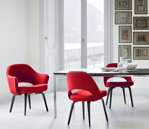 One, two, four or more…the Executive Side Chair with metal legs designed by Eero Saarinen in 1957. Produced by Knoll in the USA. photo: http://hivemodern.com/pages/product1265/knoll-eero-saarinen-executive-side-chair-metal/