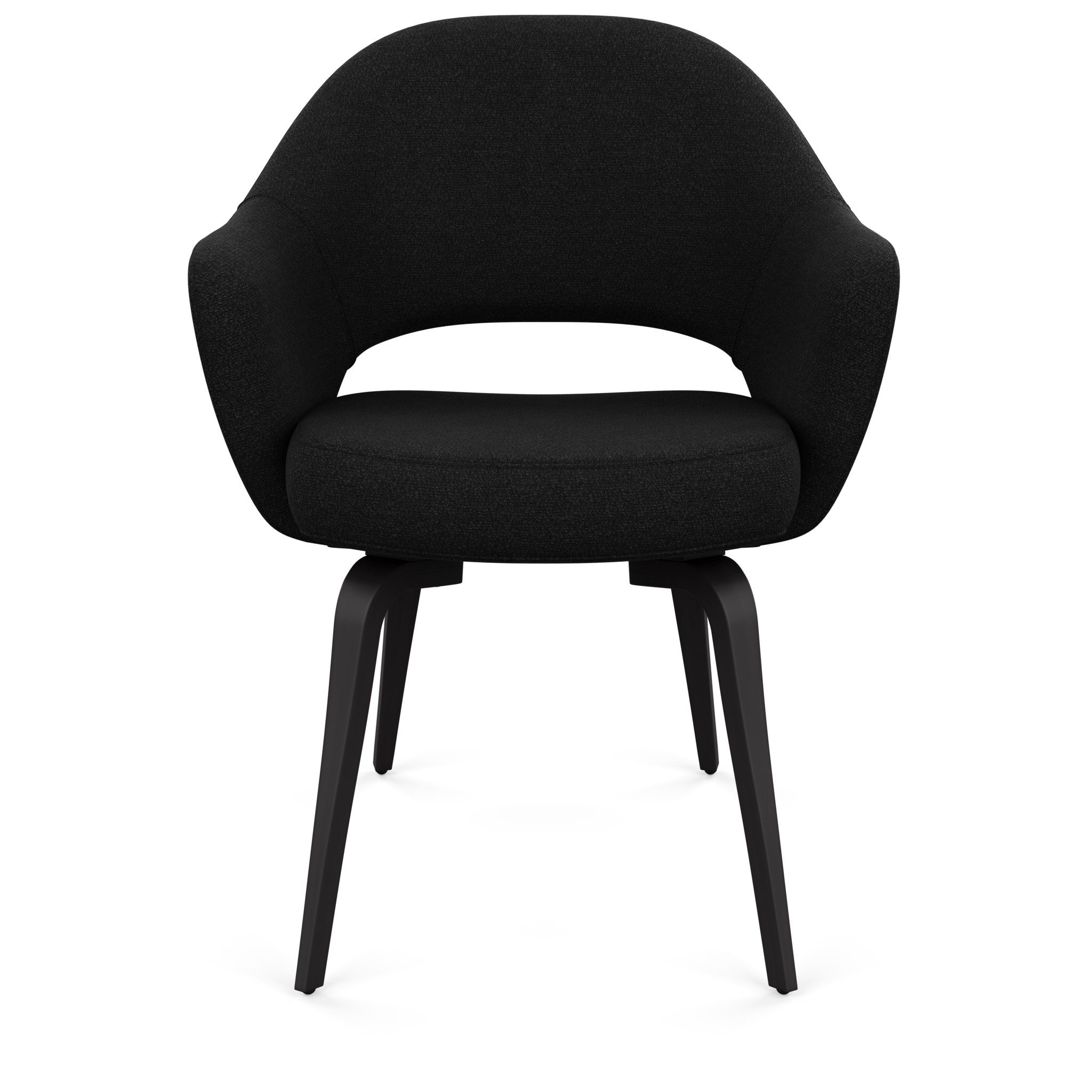 While hindsight might be 20/20, the New Year brings with it new vision, new possibilities, a new look at old favorites. Take the classic Saarinen Dining Table for example. As long as I can remember there were only two options for me…white base with a white laminate top or, if your wallet was feeling generous, the white base with the Calacatta marble top. simplequietmodern perfection. Then the recent introduction of a new size and new top finish had me rethinking things…re-examining the fluid lines and sculptural form. In it’s new incarnation, the Saarinen oval dining table at 96″ will seat eight. And, the black base finish with the matte black laminate top…well, it’s just too good. While I’m comfortable most days in head to toe black, it’s no wonder I’ve fallen so hard. Add into the mix the Saarinen Executive Armchair upholstered in Knoll’s Classic Boucle in Onyx and the 20’s are off to a very good start.