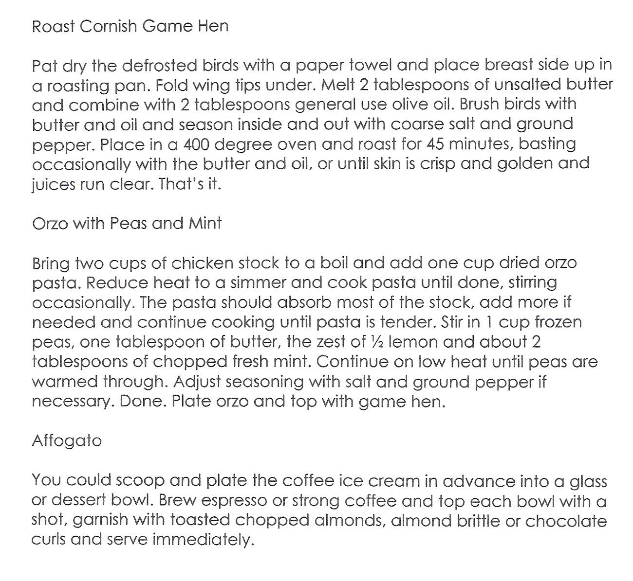 Tags: Affogato, Brulee Almond Brittle, Brut Rose, Coffee Ice Cream, Dinner for Two at Home, DIY, Espresso, February 14, Gourgere, Mid-Week Celebration Dinner, Orzo with Peas, Roast Cornish Game Hen, Sparkling Wine, Toasted Almonds, Valentine's Day Dinner Menu