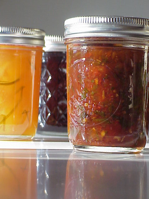 any longer. I was gifted this holiday with a HUGE basket of homemade preserves, salsas and sauces, each one looking like a jewel as the sun shot through each jar. These are not your grandma’s canned goods…no way. Modern combinations like Blueberry Lime Jam, Raspberry Mango Jam …and my personal favorite…Ginger Pear Marmalade, will have you running for a spoon.