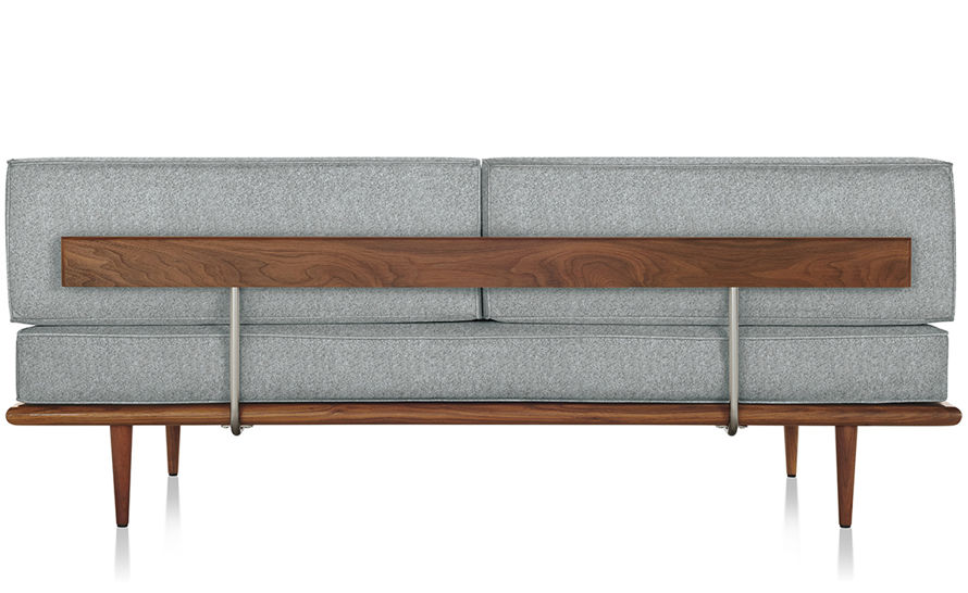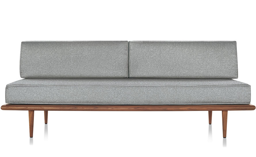 for a relaxing sit or restful sleep. The George Nelson Daybed, designed in 1950 is available once again. Produced by Herman Miller, it is lean minimalist seating by day, firm comfortable bed by night. Perfect for that first apartment, a home office/guest room or that modern weekend cabin. My favorite incarnation is as shown in walnut. A light ash finish, brushed or polished metal hairpin legs and dozens of approved Herman Miller Textiles are available options.
