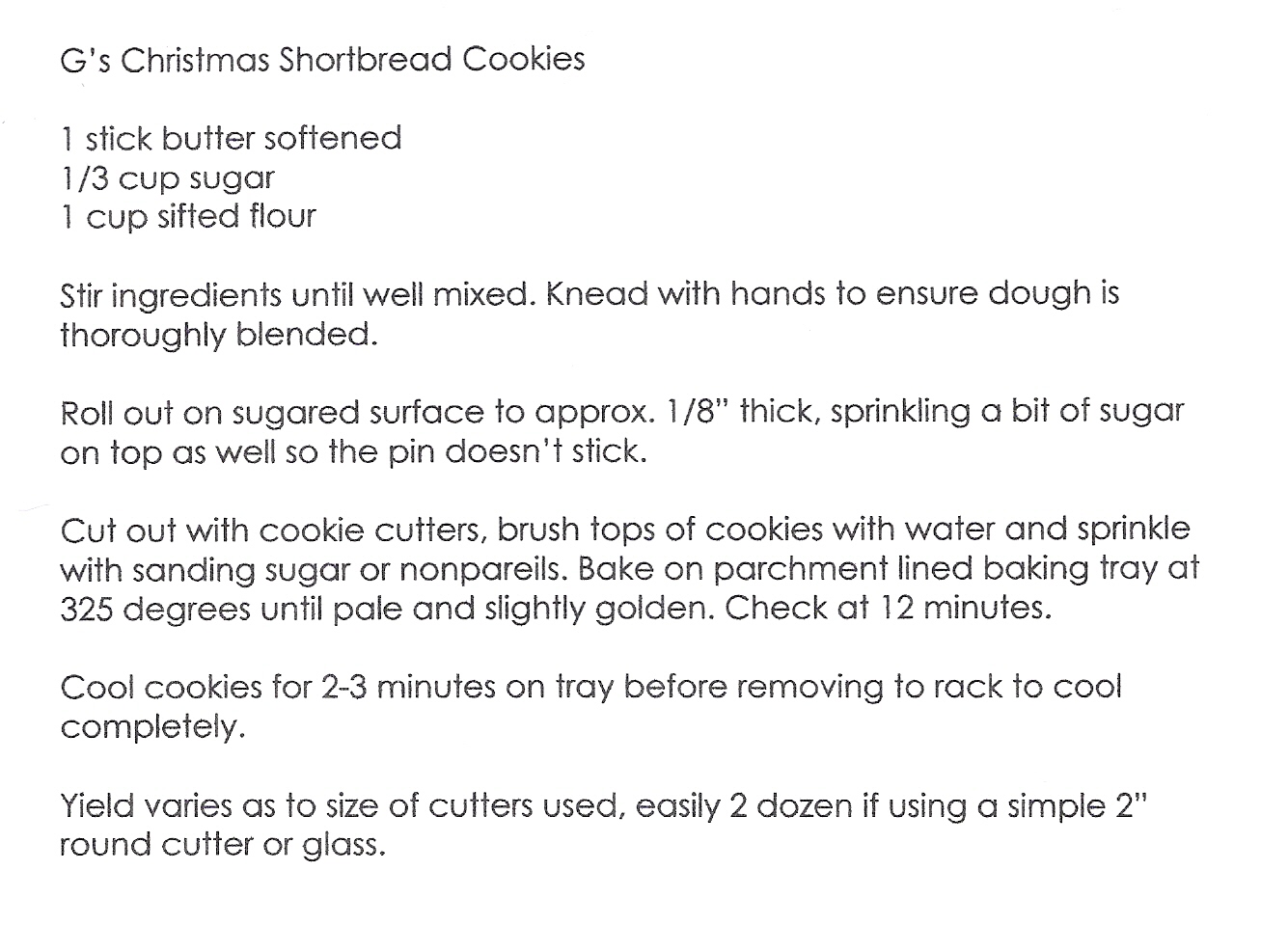 Nothing says Christmas like a plateful of homemade Christmas cookies. If you have the time, great, but who wants to run out for that list of ingredients? Relax. Simple shortbreads…using only 3 ingredients you have on hand…to the rescue. Pull out that rolling-pin, some vintage cookie cutters and turn on that oven. If this is the only baking you do this season, no one will be disappointed.