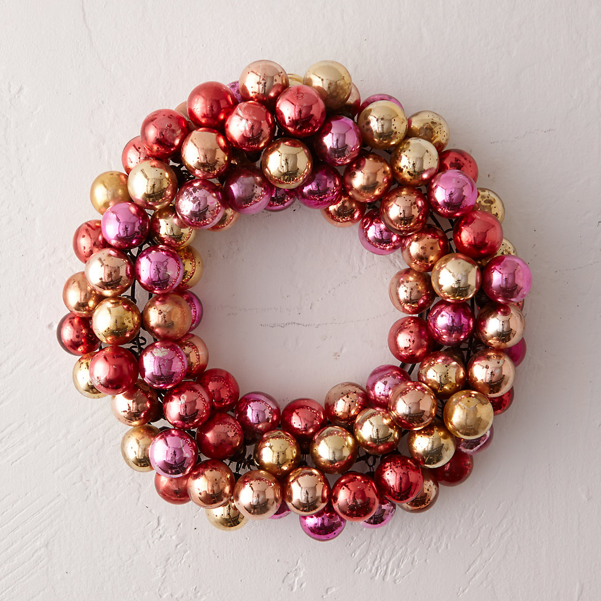 Your entry should set the tone of the holiday the moment guests arrive. A lush wreath of Magnolia can hint at the simple treatments ahead of natural evergreen boughs and cones. A vintage inspired wreath of shiny glass balls can play nicely with a collection of ornaments in shades of 60’s pink. If a little matte gold is what you’re craving, this wired garland of pressed metal leaves will take on a Calder-like playfulness when coiled loosely into a circle. I can see any of these options working for me, each taking on a quite different character against the Chartreuse paint color of my front door. I’m leaning toward…