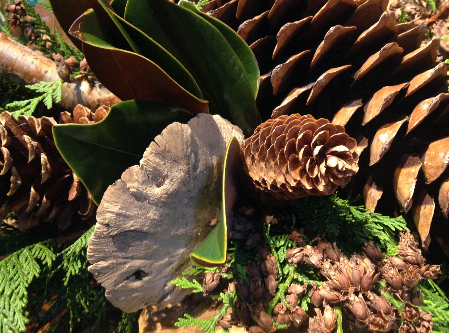 AKA ” Greenery”, Pantone Color Institute color of the Year for 2017. You could almost see this one coming. A bright yellow-green offering us hope, promise, rebirth and rejuvenation*. That’s a tall order for a single color. You might think about taking it for a test drive now, and use it as a starting point when decking your halls. Simple winter ” greenery “, assorted cones , a hit of vintage inspired ornaments…