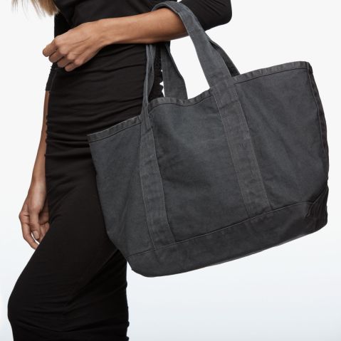 then bigger is better. From a quick spin around town to your next long weekend, these canvas totes from James Perse will have you bringing home the ingredients for tonight’s dinner to packing all you’ll need for a few days away. Made in the USA of Italian heavy duty cotton/linen canvas, the small Tote measures 24″ w x 13″ h and the large tote comes in at 29″ w x 21″ h, both with an interior pocket and a 7-8″ shoulder strap drop. Of the dozen neutral shades available the Asphalt shown is my simplequietmodern selection that will work as well now as it will Fall, Winter or Spring. Makes me want to start packing for my next extended road trip.