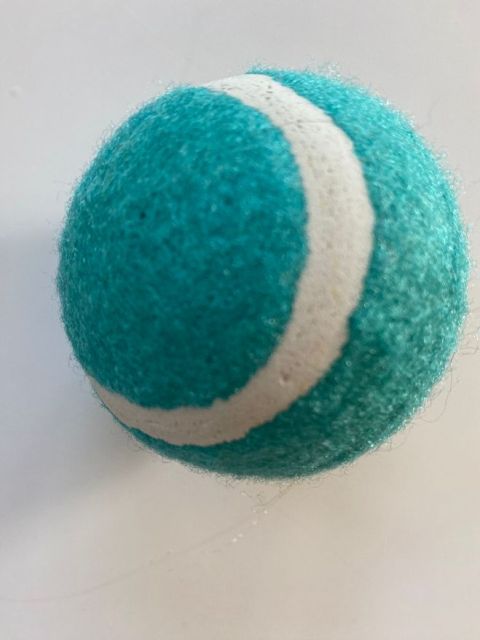Even little Porkchop deserves a special treat. This tennis ball in fun turquoise should keep him busy. Well, at least until it looks like confetti.