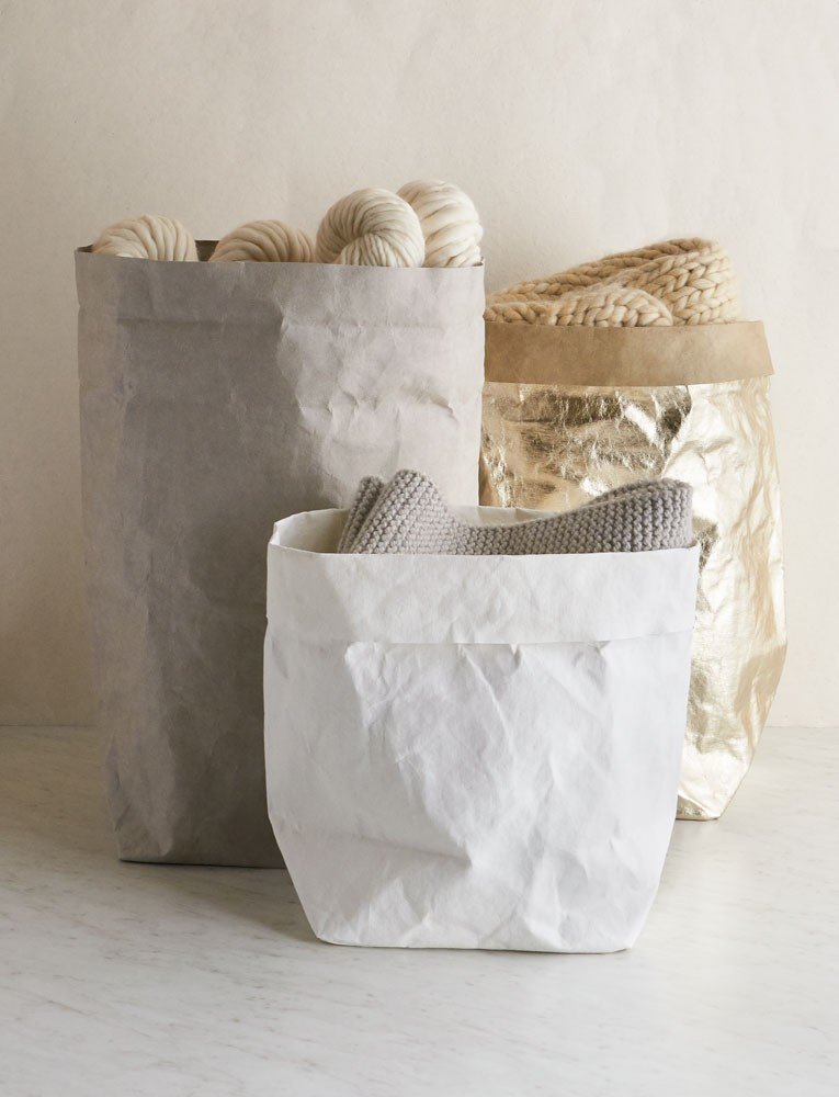These Italian woven paper bags by UASHMAMA feel like leather. They can be the gift or become a special gifts modern reusable wrapping. Photo: https://www.purlsoho.com/uashmama-paper-bag.html