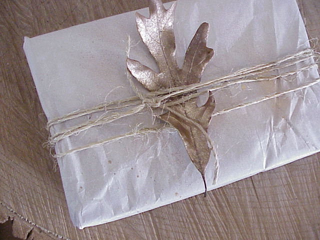 As you start stockpiling your gift purchases also start giving some thought to your gift wrap while a treasure of free materials is staring you in the face. The crisp white tissue, softly rumpled newsprint and” green” packing materials are a great place to start getting creative. And, at no cost. The addition of a $2 ball of sisal twine and a few found objects…twigs, leaves, cones…will have you presenting gifts that will be almost too pretty to open.