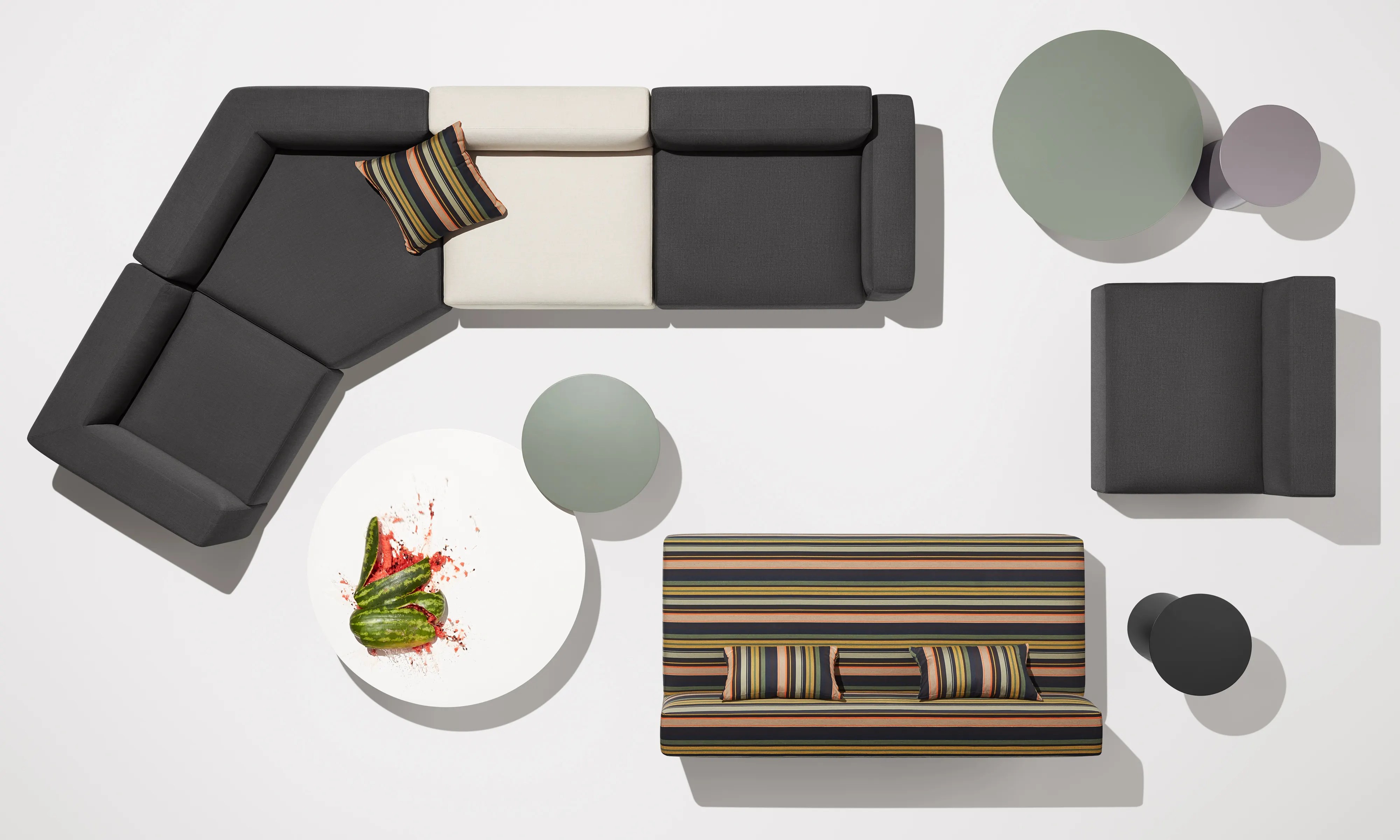 Before you know it these cooler Spring days will be warming up and there will be no stopping us from heading outdoors to spend the rest of the Summer. Furnish your outdoor space with any of the 9 Yard group of outdoor upholstery from Blu Dot and you might not want to return to the indoors come Fall. The Armless Sofa and Slipper Chairs in either the Sunbrella Stripe or Charcoal fabric will have you lounging in carefree style all season. And, if you have the space, the addition of varied corner and end pieces will have you creating a lounge area fit for a crowd. The clock is ticking. Only six weeks until the unofficial start of Summer.