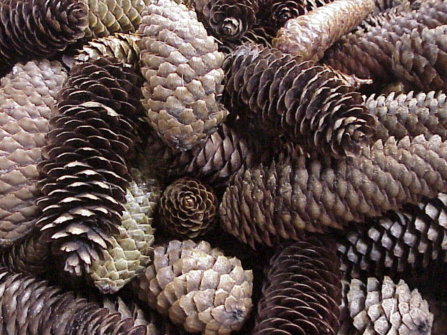 Cones, cones and more cones. If you had the foresight to be gathering these along the way, their rich brown texture would be a freebee.